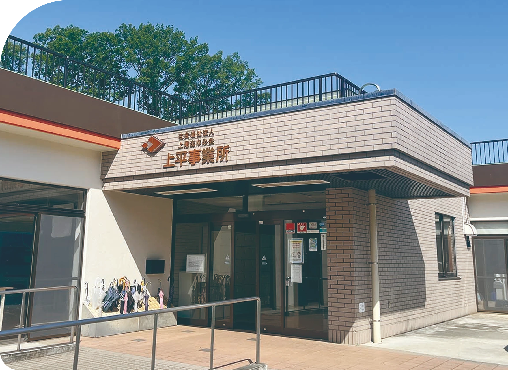 上平事業所では、生活支援と活動機会を通して“できる”を少しずつ広げます。スタッフとの近い距離感で、毎日に安心と自信を育みます。