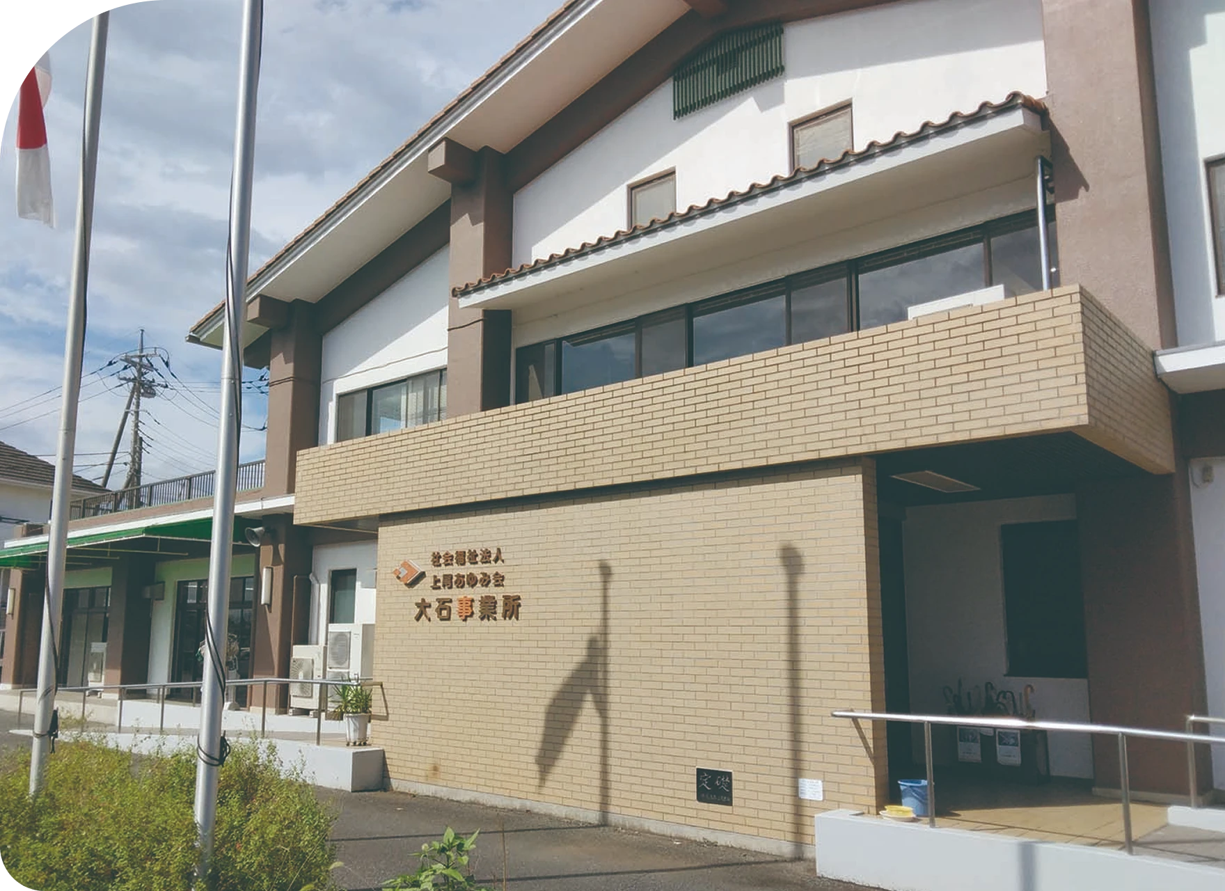 大石事業所では、生活介護と就労継続支援B型の2つのサービスを提供しています。事業所内での作業や創作活動、日常生活の支援を通じて、働く力や生活のリズムを育みます。地域の中で安心して過ごせるよう、一人ひとりに寄り添った支援を行っています。